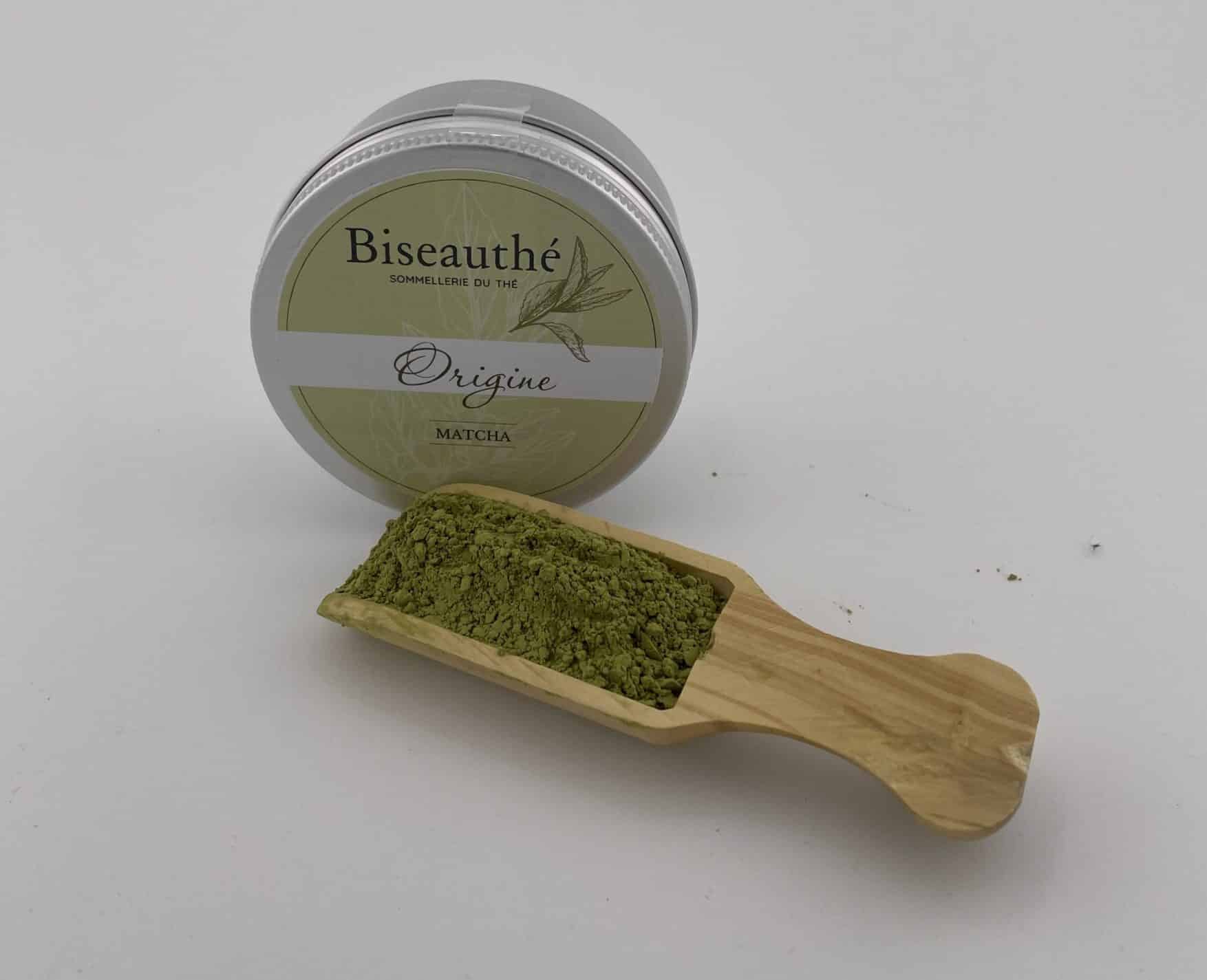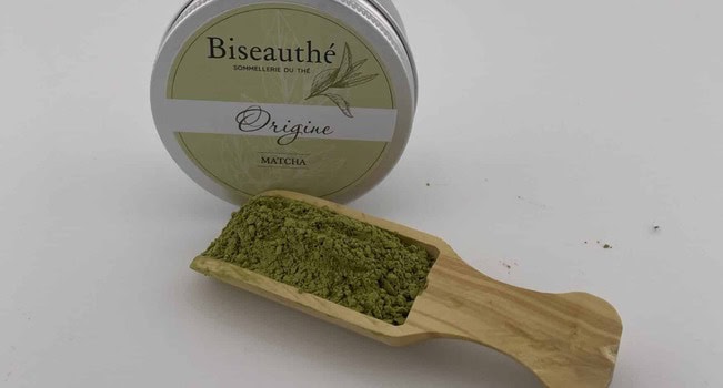 Poudre de thé vert matcha fine et onctueuse, Sa saveur est umami et sa texture est soyeuse.