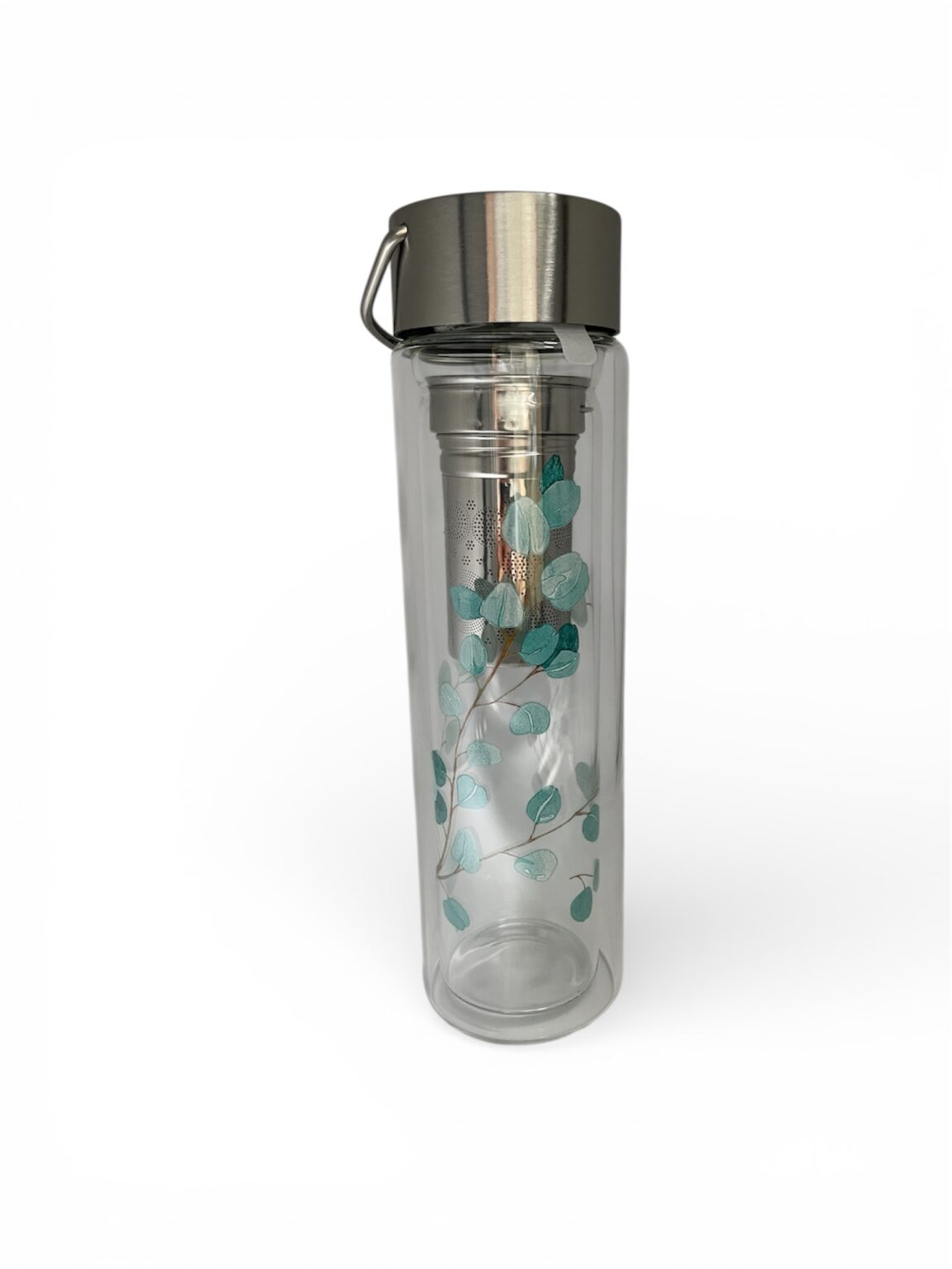 Bouteille isotherme en verre avec filtre en inox intégré, avec sa housse néoprène pour maintenir votre Thé ou Infusion à température d’une contenance environ 35cl.